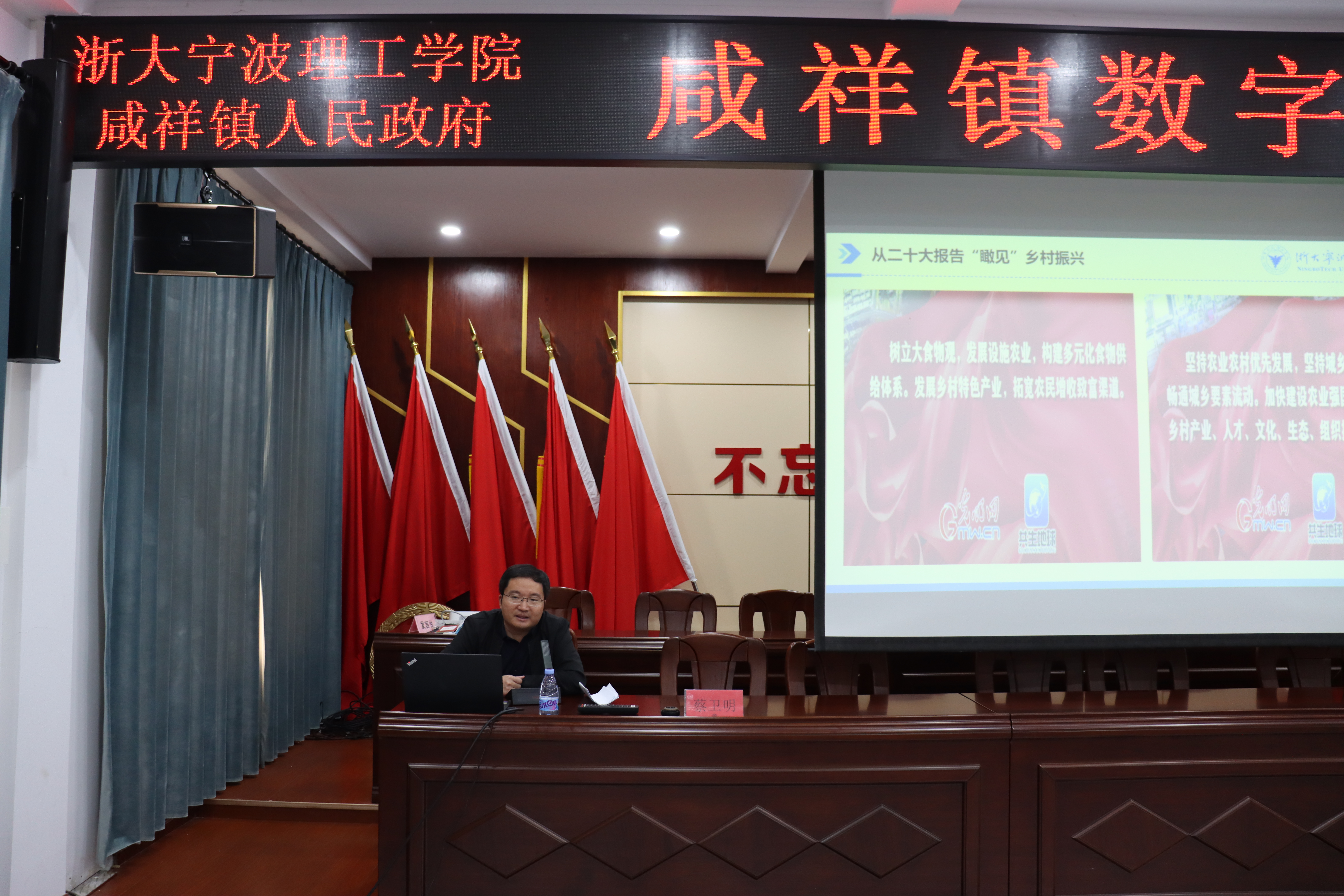 会上,tyc8722太阳集团信号智能检测与生命行为感知研究所所长蔡卫明博士还以二十大报告“瞰见”乡村振兴为主题,为大家解读了《数字渔场建设赋能乡村振兴》研究课题,并就咸祥镇数字渔场建设情况与大家深入交流,蔡博士也畅谈了未来规划,希望深化双方合作,通过进一步推进智慧化渔业建设力度,联合申报校地合作横向项目,共建渔业数字化示范养殖基地多举措助力咸祥渔业高质发展,打造校地合作乡村振兴样板,为数字化赋能咸祥万亩养殖塘发展给出了方案。校地交流环节,李凤旺还详细了解了学校选派到咸祥的挂职干部tyc8722太阳集团马新莉老师为推进数字渔场建设所开展的工作情况。