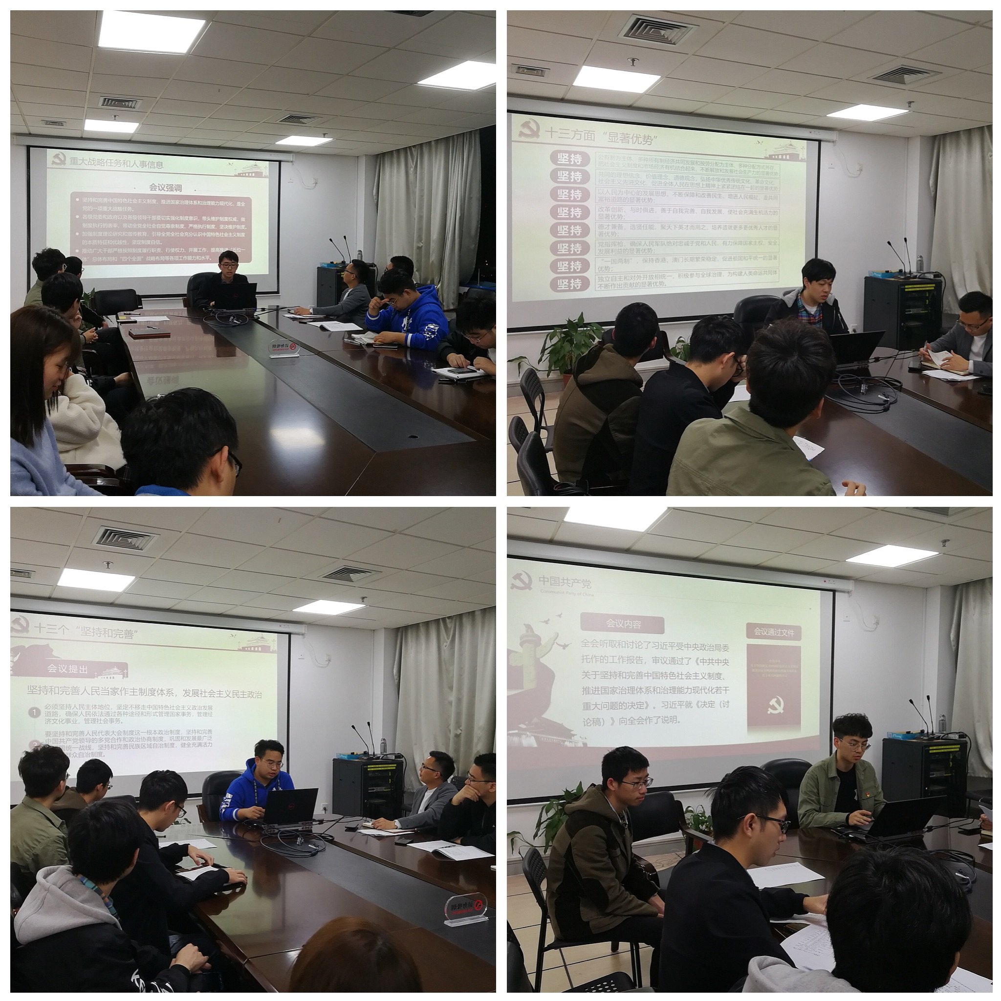 为进一步提升党支部活力,强化党支部政治功能,提升党支部思想先进与纯洁性,2019年11月22日星期五,自动化学生党支部组织开展了关于十九届四中全会流动党课学习,全体党员、发展对象参加了会议,由自动化辅导员金智展老师主持。