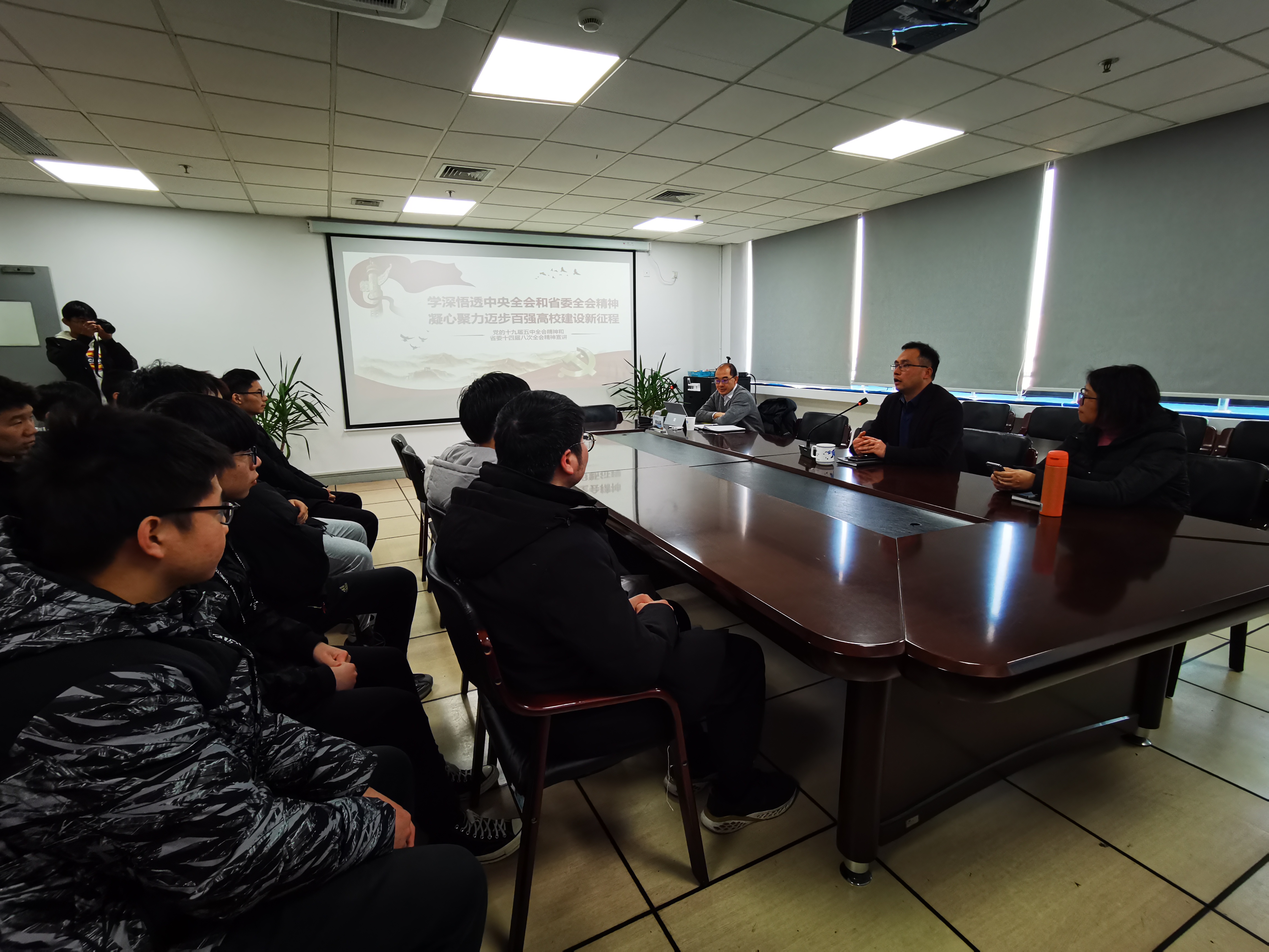 12月16日下午,杨灿军副校长赴tyc8722太阳集团作题为“学深悟透中央全会和省委全会精神,凝心聚力迈步百强高校建设新征程”的报告,会议由tyc8722太阳集团党委负责人应中元主持,tyc8722太阳集团党委委员、副院长陶吉利,自动化教工党支部部分教师及学生党员代表参加了本次宣讲会。