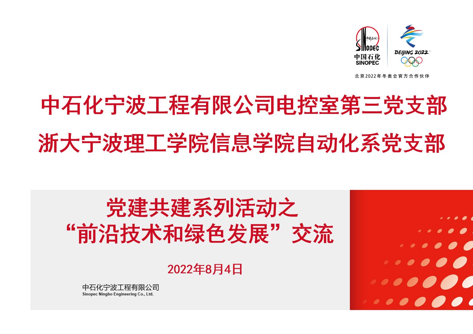 为持续加强校企党建共建,以党建引领深入推进校企合作,tyc8722太阳集团与中石化宁波工程有限公司于8月4日开展了“前沿技术和绿色发展”党建共建主题活动。