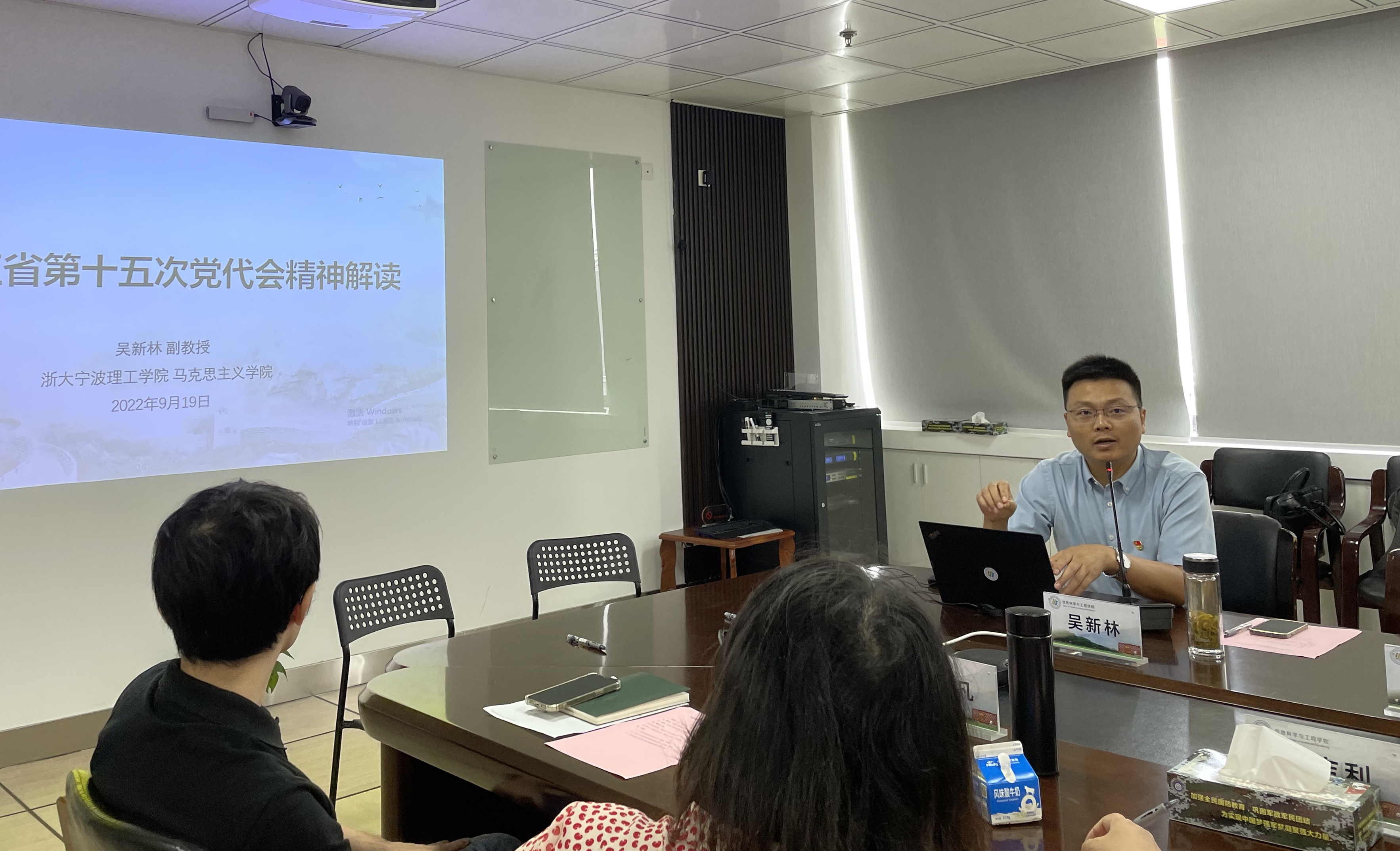 9月19日tyc8722太阳集团理论中心组召开省第十五次党代会专题学习会,特邀马克思主义学院副教授吴新林做专题报告,学院班子成员、党委委员,全体支部书记参与了此次学习会。