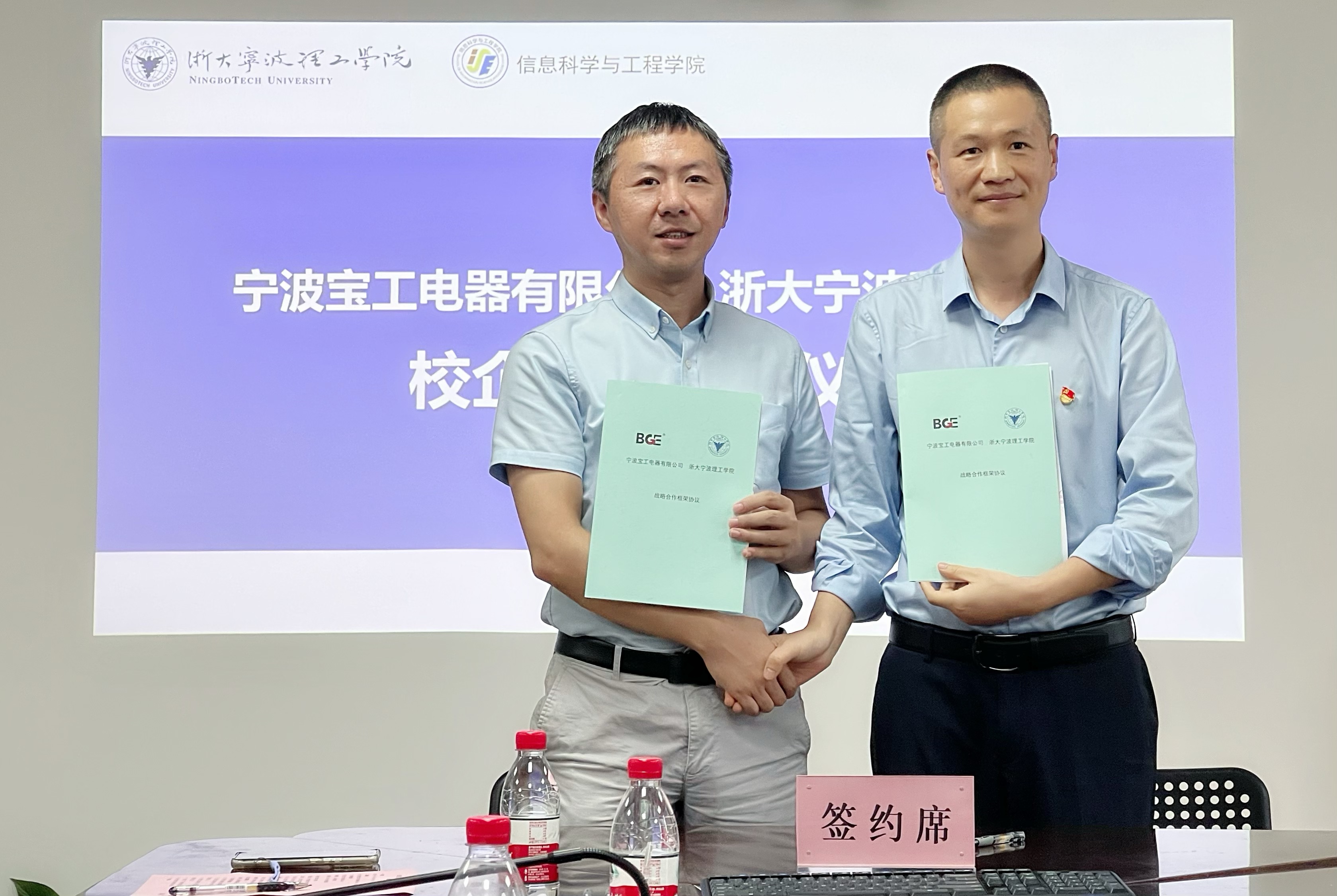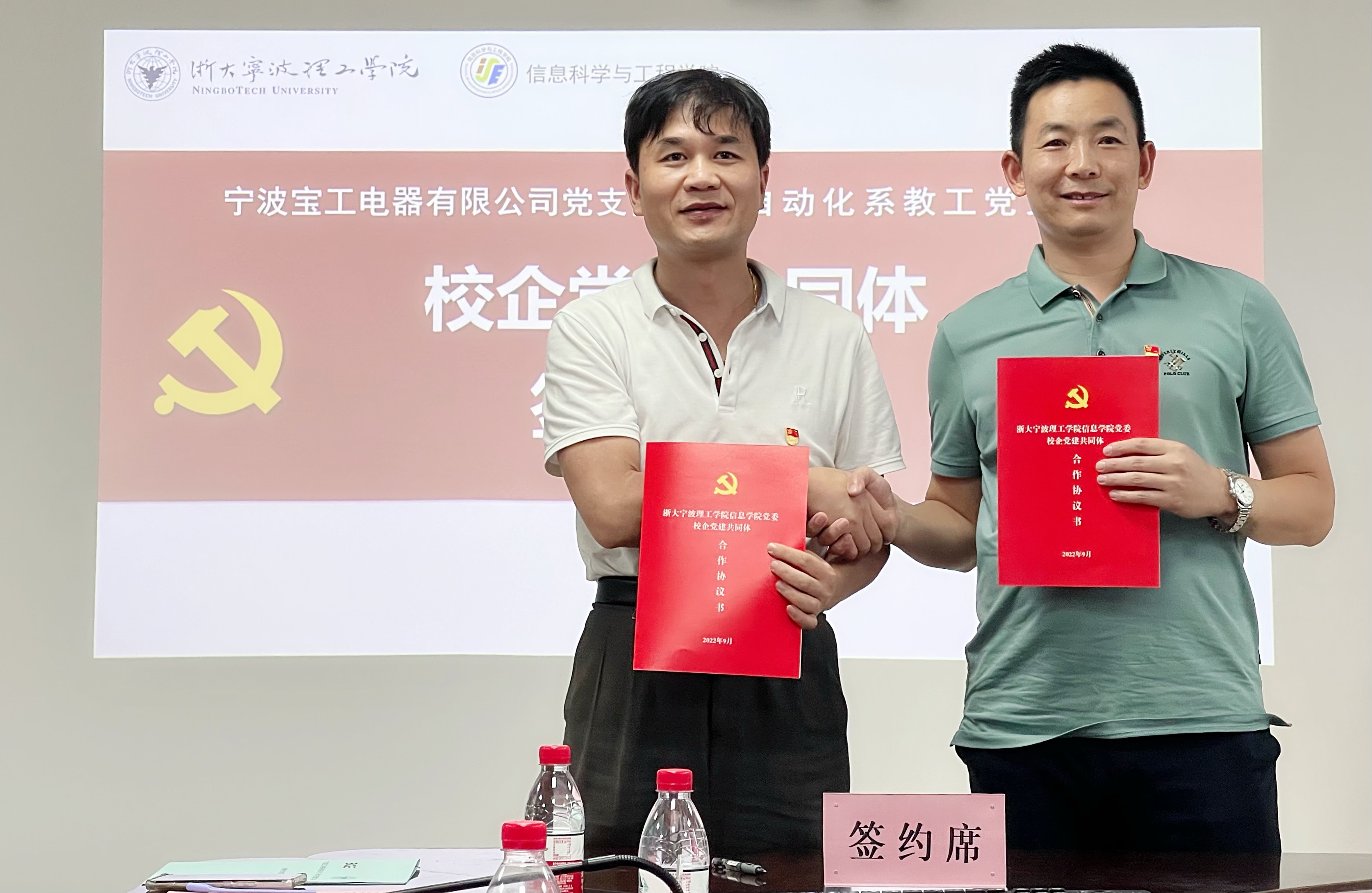 为全面深化产教融合,进一步强化校企衔接、促进校企合作,持续提升人才培养质量,2022年9月30日太阳集团城娱8722与宁波宝工电器有限公司开展战略合作签约仪式。宁波宝工电器有限公司总经理周枢军,人力资源总监张志强出席;学校党委委员、纪委书记黄光杰,科研处处长胡长兴,地方合作处副主管潘峰,以及tyc8722太阳集团党委副书记郑毅等班子成员参加了此次签约仪式。