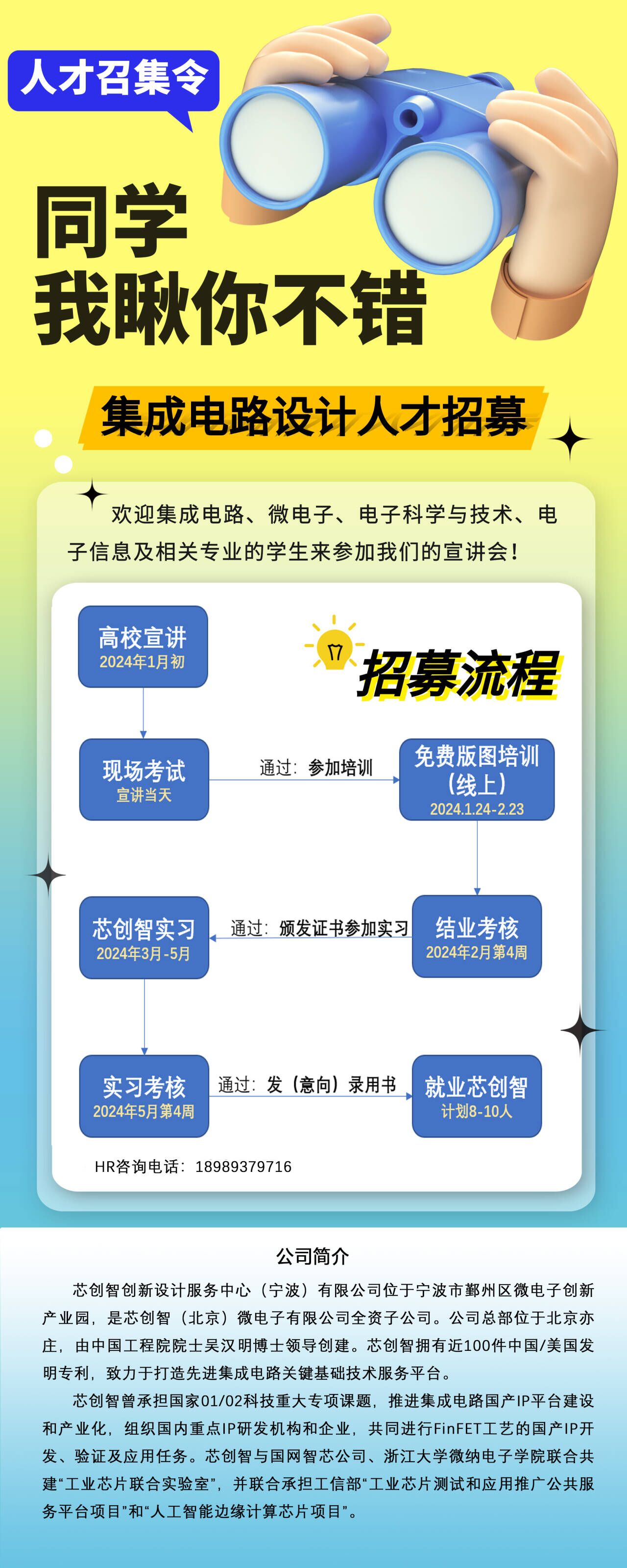【招聘】芯创智创新设计服务中心(宁波)有限公司2024届校园招聘简章