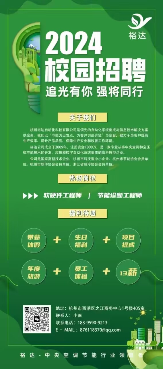 【招聘】杭州裕达自动化科技有限公司2024届校园招聘简章