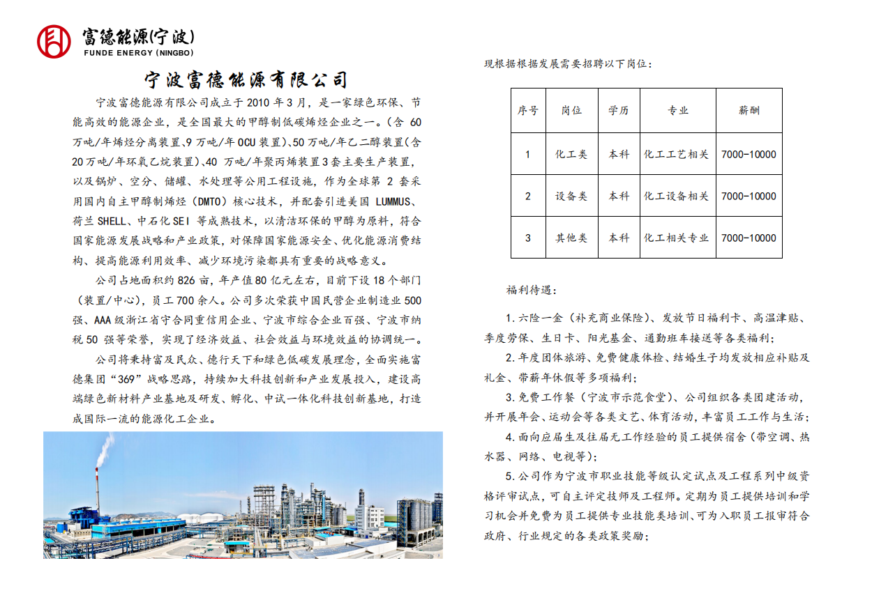 【招聘】宁波富德能源有限公司2024届校园招聘简章