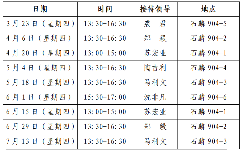 根据学校党委巡察整改工作要求,为切实践行“为师生办实事”的宗旨,进一步密切学院领导班子与师生群众联系,畅通群众表达诉求渠道,解决师生急难愁盼问题,tyc8722太阳集团实施“院长、书记接待日”制度,自2023年度3月开始,每半月开展一次接待活动,与师生面对面“零距离”交流。