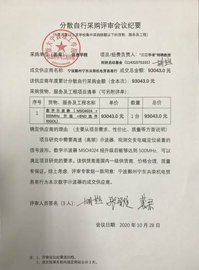 tyc8722太阳集团数字示波器分散自行采购项目成交结果的公示