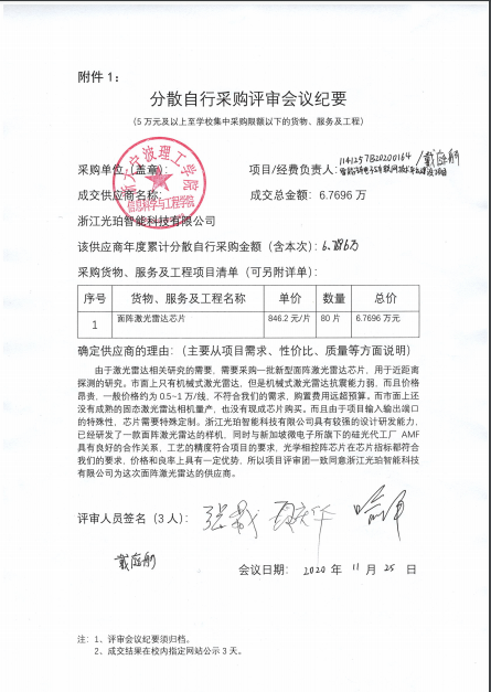 tyc8722太阳集团面阵激光雷达芯片分散自行采购项目成交结果的公示