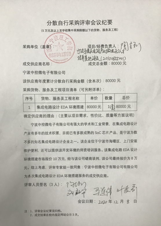 tyc8722太阳集团集成电路设计EDA环境搭建分散自行采购项目成交结果的公示