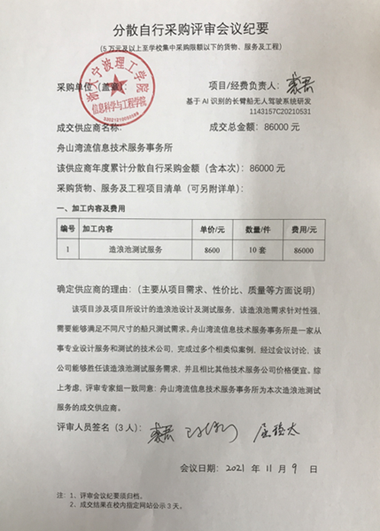 tyc8722太阳集团造浪池测试服务加工服务分散自行采购项目成交结果的公示