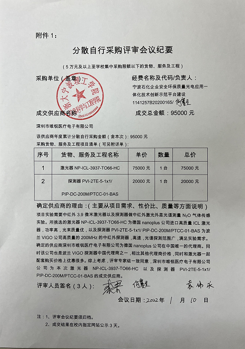 tyc8722太阳集团激光器和探测器分散自行采购项目成交结果的公示