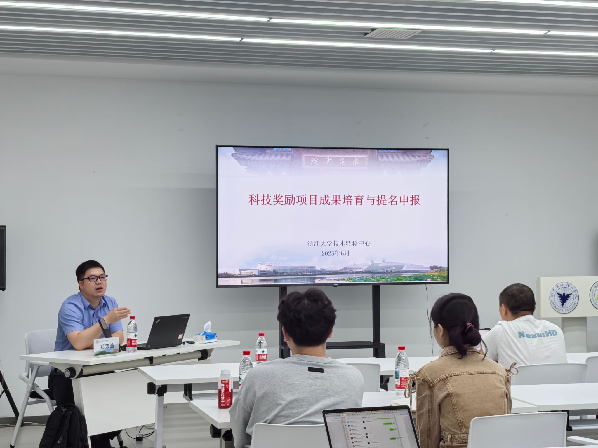 郑宗波以《科技奖励项目成果培育与提名申报》为题展开系统讲解,简明梳理了国家级、省部级科学技术奖励的实施细则、申报要求及评审要点;其次,郑宗波结合自身申报工作经验解读了科学技术奖评审的政策导向与评审标准;最后郑老师分享了奖项申报过程中的要点、重点及难点,为接下来的奖项申报提出有针对性的指导意见。