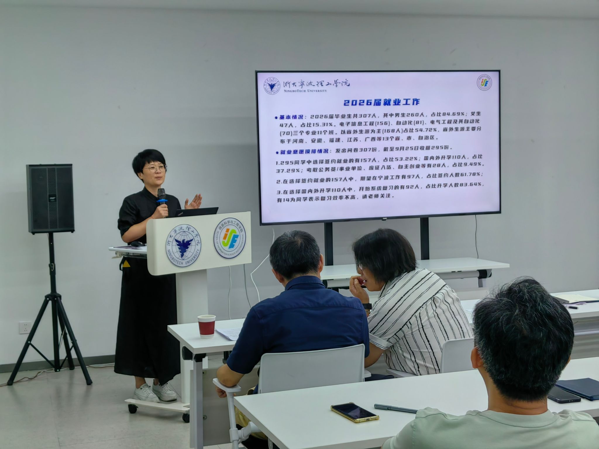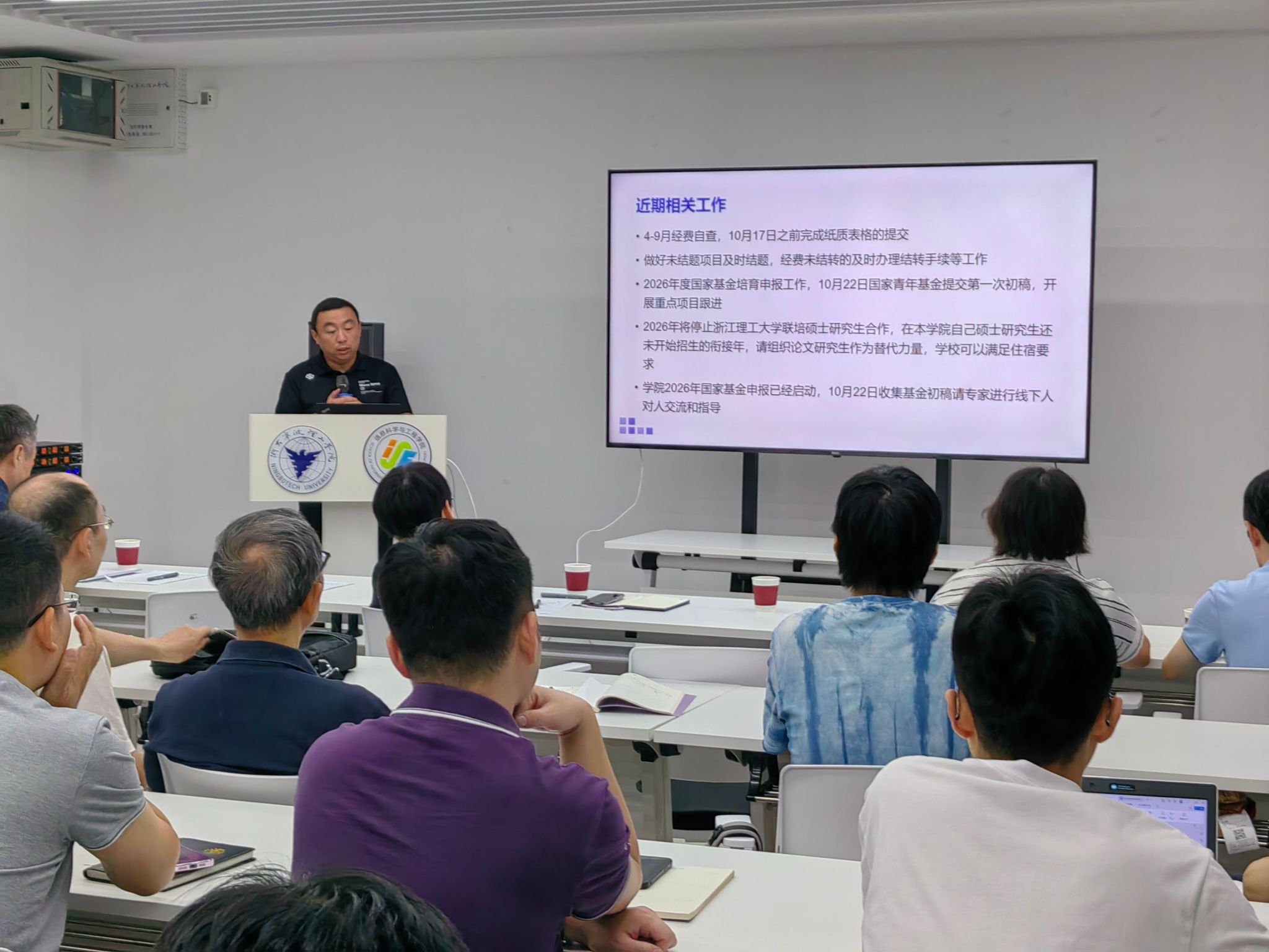 会上,郑毅就学院“十四五”发展规划实施成效做出了分析,并对学院“十五五”发展规划构想进行了介绍。他指出,在全院教师的共同努力下,十四五期间学院大部分指标达成度较为理想,但教学成果奖、科研平台、人才队伍等关键性指标仍存在差距。他强调,十五五期间学院将聚焦国家战略需求、区域发展需求、学校发展需求,围绕1个中心2高4新的学科与专业建设方向谋篇布局,即围绕控制科学与工程学科省一流学科攻坚,深耕数智临港、先进制造、未来产业三大重点领域,建设三大高能级平台即智慧港城与智能技术工程研究中心、省绿色船舶制造数字化产业技术工程化中心、省未来产业科教融合学院,建强六大科研创新团队,实施五大专项行动;冲击2项国家级成果即实现国一流专业突破和国一流课程新增,从产教融合教材、课程、平台、成果4个方面打造省级的“品牌”,同时,聚焦AI+形成具有示范性的专业课程。他还指出,师资队伍是基础,人才培养是出路,希望全体教师齐心合力,凝心聚力,积极为学院引荐优秀人才,突破师资队伍紧缺的困境。同时,要积极加强对外交流,加强与优质企业的合作,为科学研究与社会服务、人才培养打开新的局面。