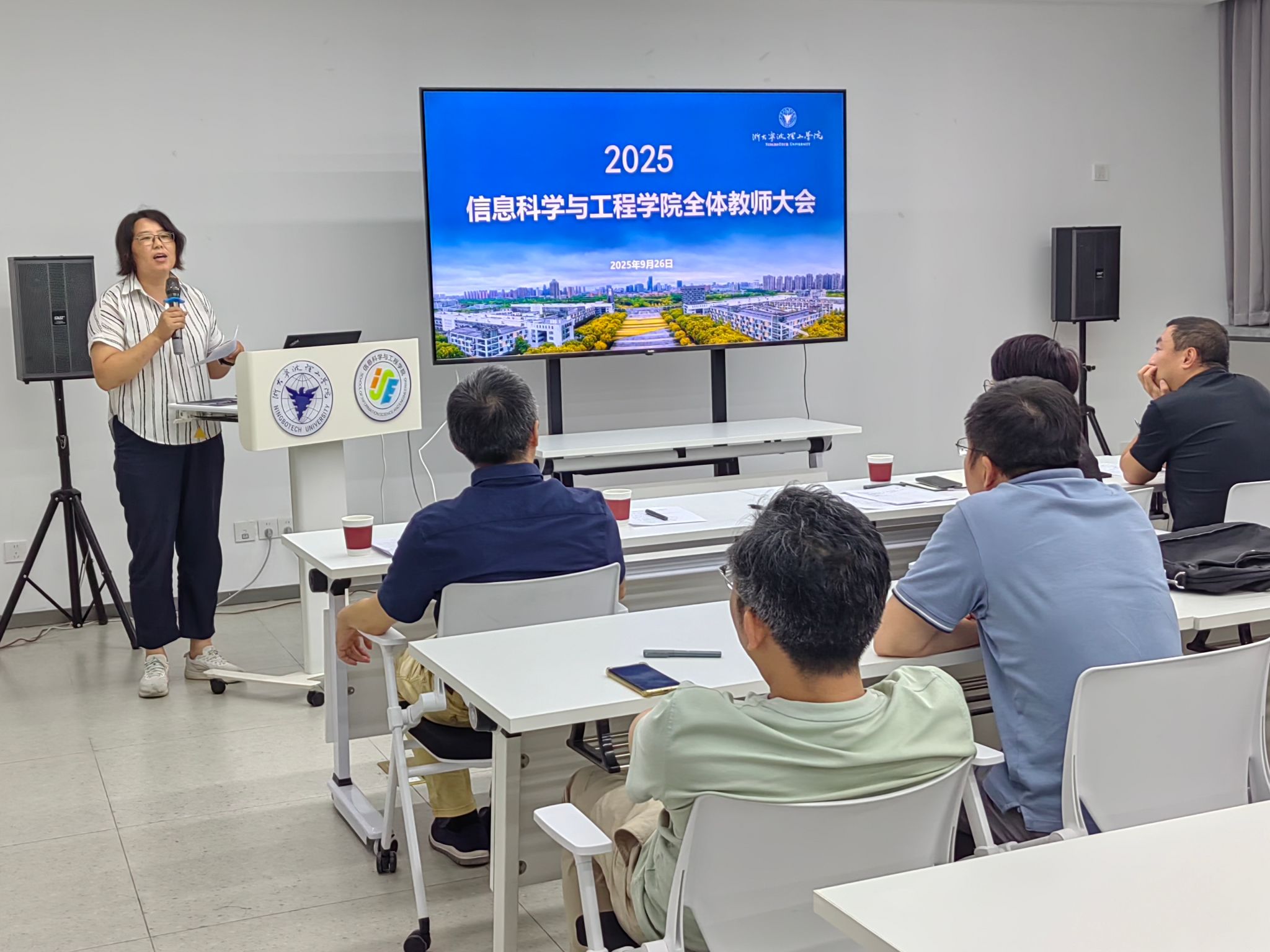 会上,学校创新创业教育中心主任贾小鹏为学院教师开展创新创业新政策解读和工作指导,全体教师受益匪浅;科研副院长裘君部署了近期科研相关工作,强调了学院对国家基金组织的新举措,并通报了近期学校关于产业教授、高层次科研项目和成果认定等工作事项;教学副院长陶吉利通报了近期教学事故案例,强调了师德师风相关事项;学院副书记、纪委书记通报了近期学生就业、安全,以及工会、纪委相关工作,强调学生就业与安全工作面临越来越多的困难和挑战,希望全体教师能团结一心,加强配合与信息互通,为学院新质人才培养贡献力量。会上,学院举行了新教师欢迎式,新教师的加入为信息工程学院注入了新鲜血液和新的能量。同时,会议部署了学校专项自查工作,并传达了意识形态和师德师风相关工作要求。