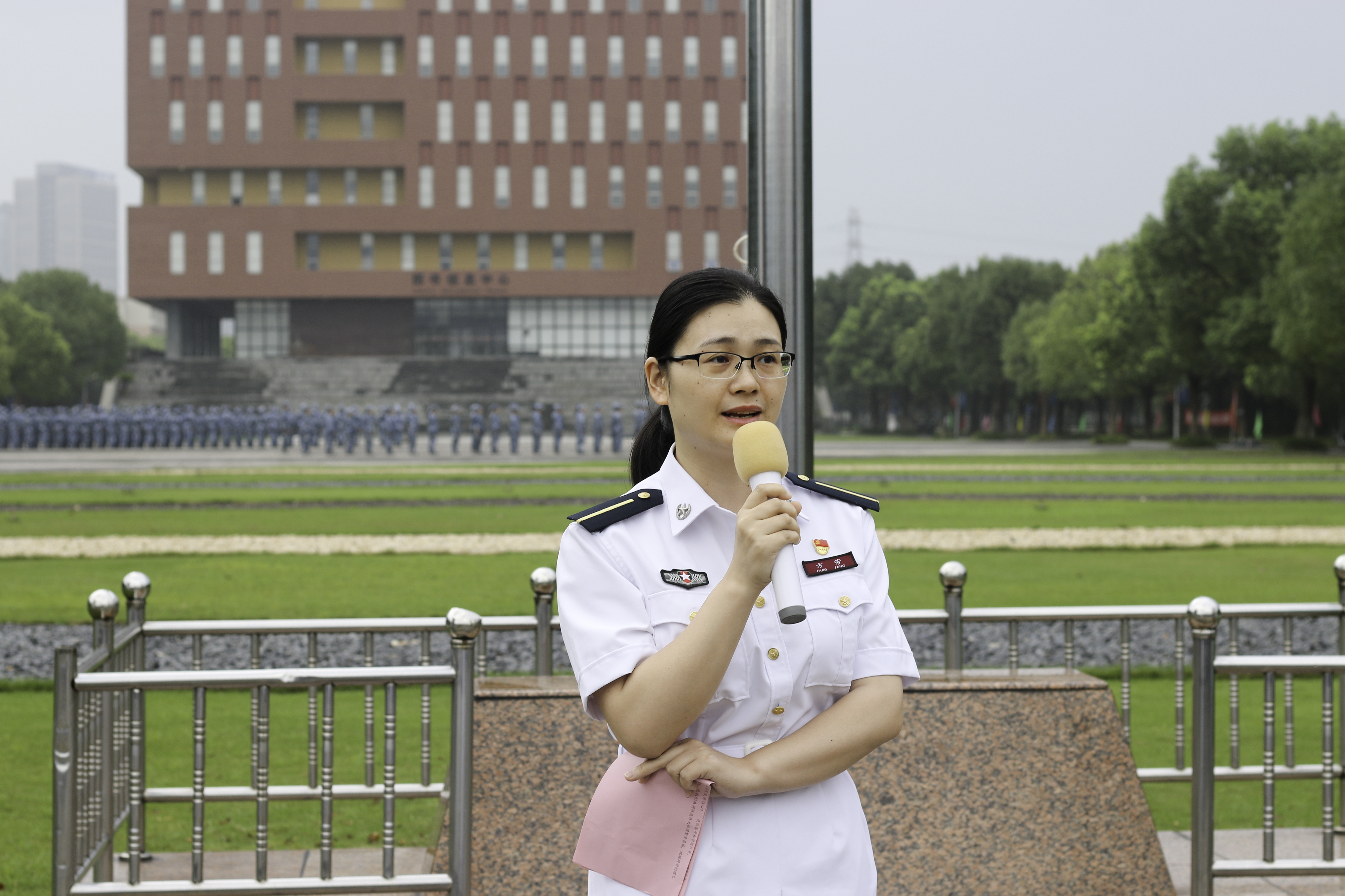 升旗仪式上,tyc8722太阳集团自动化192班新生代表韩心怡同学上台发言,代表新生们表达了对祖国的美好祝愿、对完成军训任务的决心。