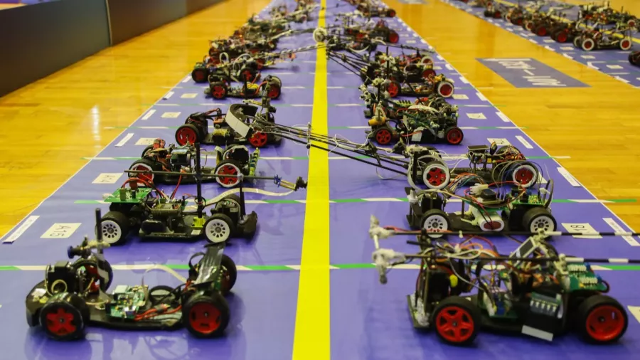 浙江赛区竞赛是今年全国赛的开幕战,为浙江省A类学科竞赛,省内34所大学共172支队伍报名参赛,参赛师生约200余人。同时进入全国普通高校学科竞赛排行榜内,是评价学生培养成效的重要依据之一。竞赛以设计制作在特定赛道上能自主行驶且具有优越性能的智能模型汽车这类复杂工程问题为任务,鼓励大学生组成团队,综合运用多学科知识,提出、分析、设计、开发并研究智能汽车的机械结构、电子线路、运动控制和开发与调试工具等问题,培养大学生的综合知识运用能力、基本工程实践能力和创新意识。本届赛事为期两天,分为竞速赛和创意赛,主要为基础四轮组、直立节能组、双车接力组、声音信标组、AI电磁组等五类竞赛。
