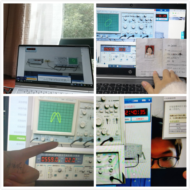 实验自然是要求有动手实践环节。特殊时期,课程组引入了虚拟仿真实验平台。比如“示波器实验”要求学生学习完示波器原理之后,还要会在电脑上操作示波器,完成实验数据测量记录处理。这种方式让同学们兴趣盎然,像是跟着老师公布的攻略打游戏,都想要通关。不少同学实验操作时间超过2个小时。课程组蒋卫建老师坦言,这为以后回到学校真正地使用示波器和后续的测量声速实验打下了良好基础。课后,自拍一张和屏幕上示波器里显示的“李萨如图形”的合照,上传到超星网络教学平台即可完成签到。