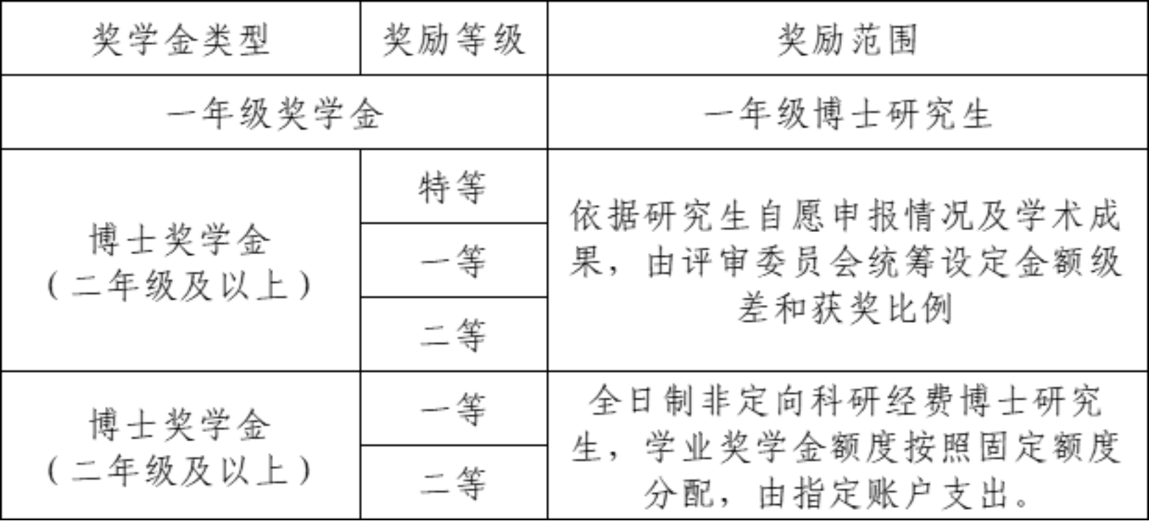 博士研究生学业奖学金等级与金额设定标准