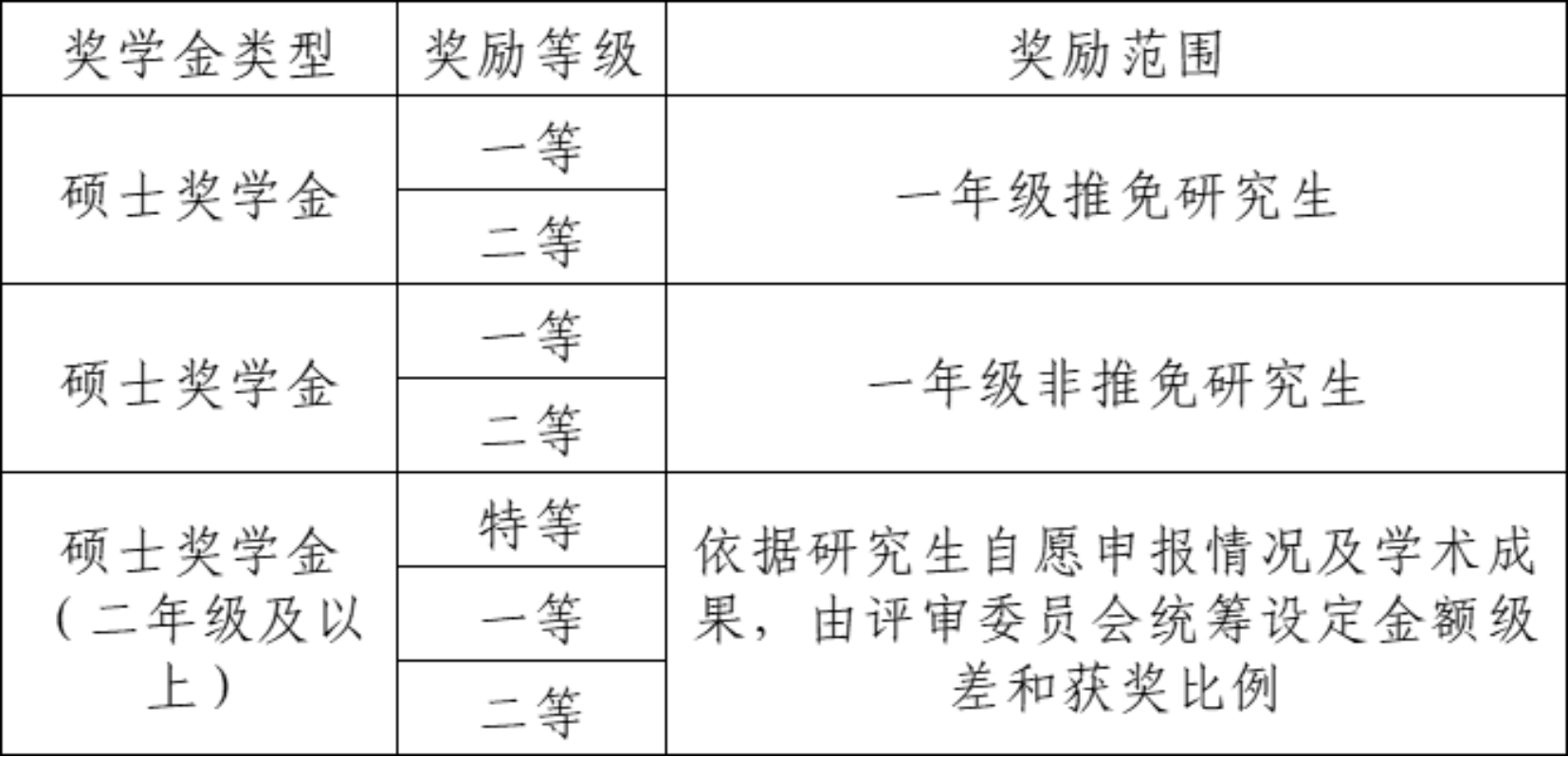 硕士研究生学业奖学金等级与金额设定标准