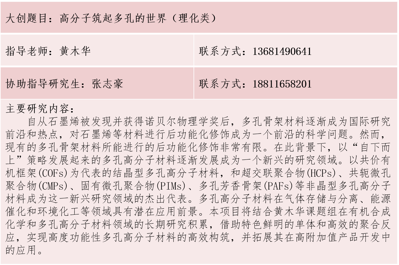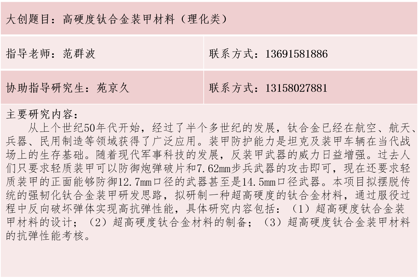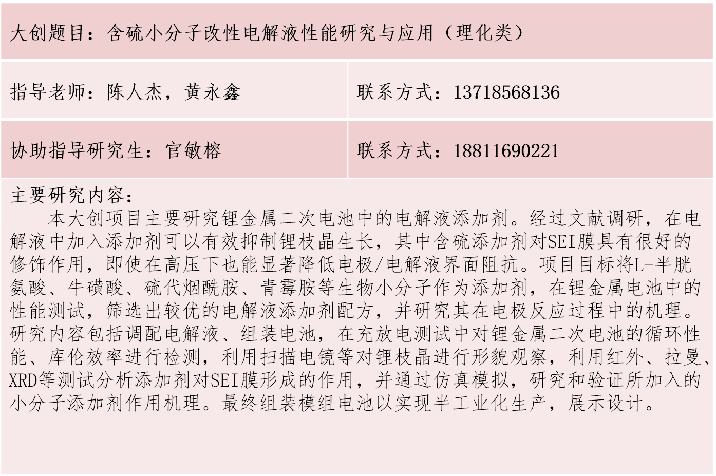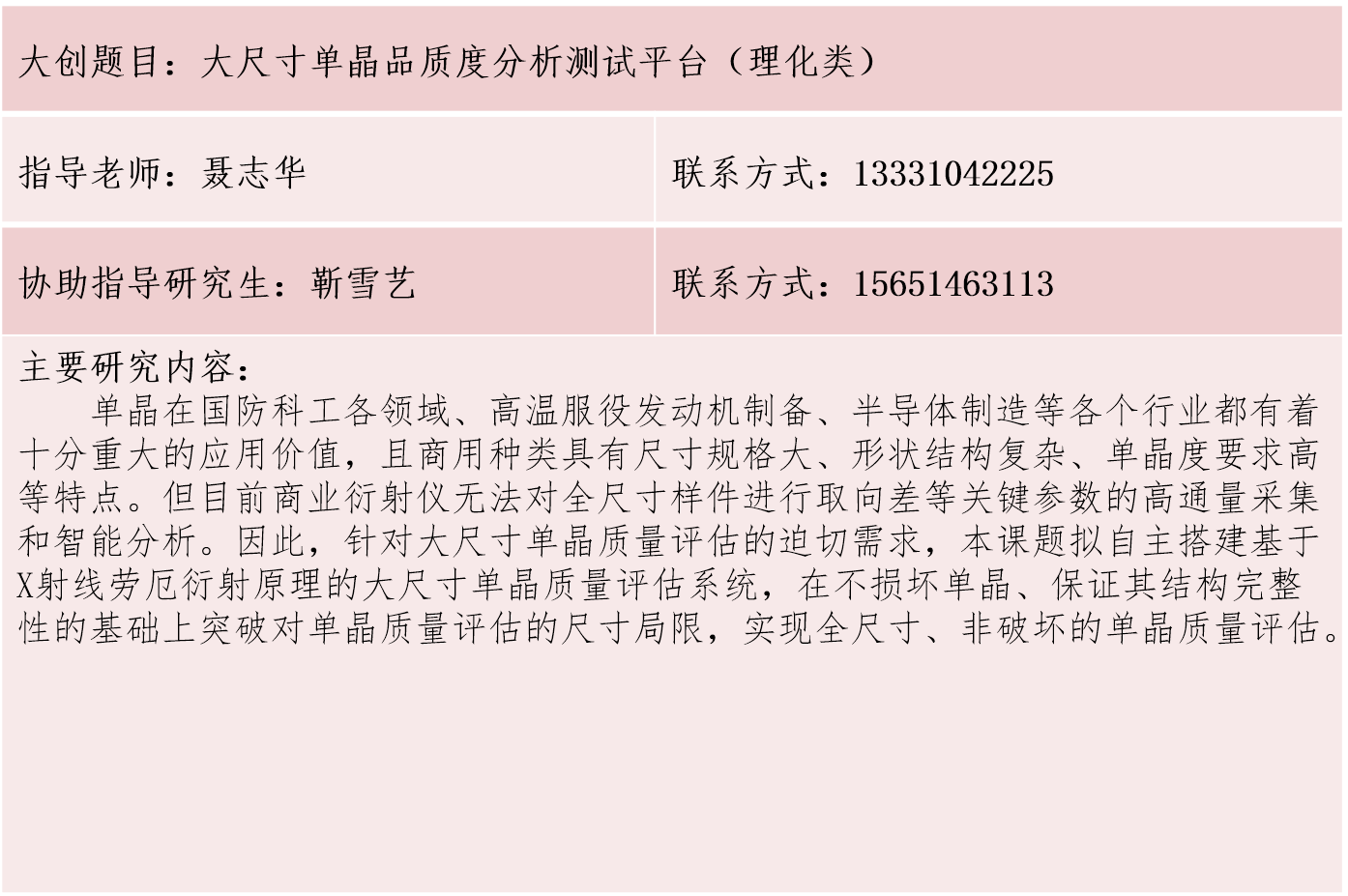 材料学院大学生创新训练计划项目库