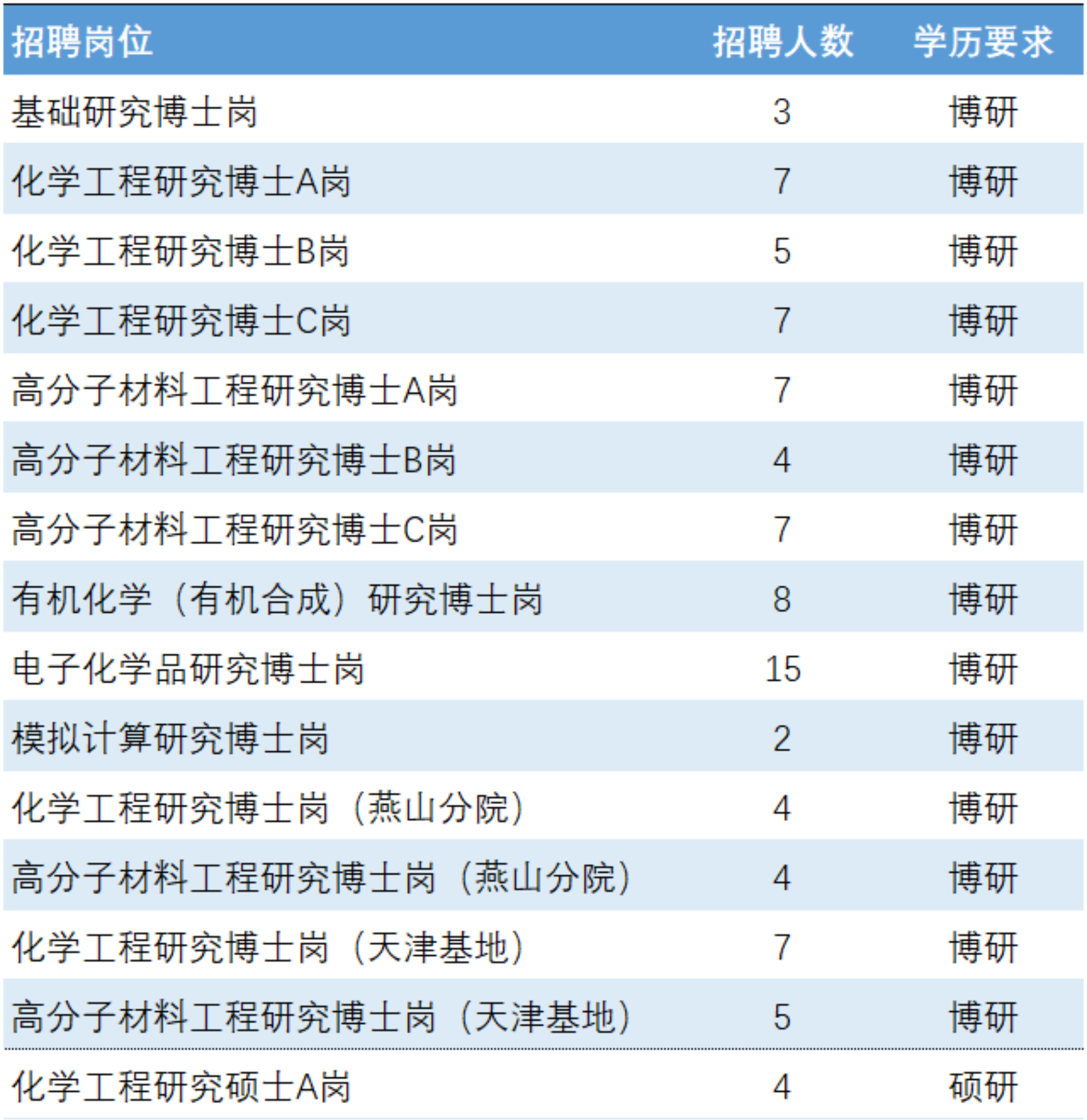 所学专业符合招聘岗位要求,满足北京化工研究院业务发展需要;