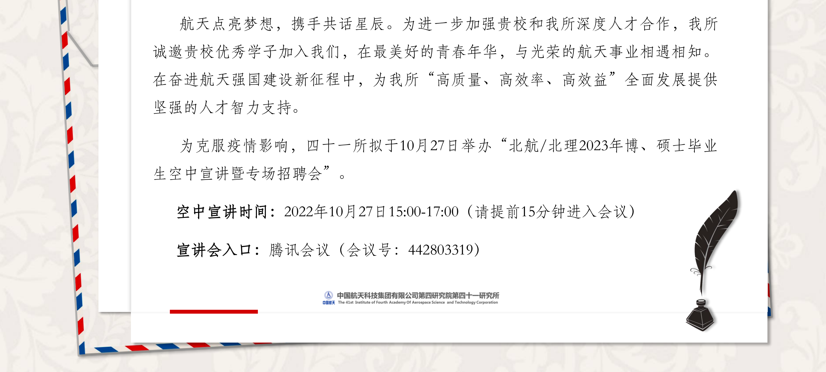 【空中宣讲会】航天科技集团四院四十一所