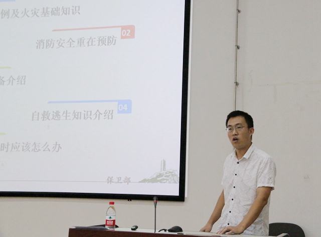接着,王坤从相关火险案例及火灾基础知识、消防设施设备、自救逃生知识和实验室管理规定四个方面给同学们做了专业的培训。他从用电安全、宿舍安全和实验室危险化学品的购买和管理三个角度强调了安全事故不仅会造成财产损失,更严重危害生命安全,必须引起同学们足够的重视。他希望同学们能够提高安全意识,做到对自己、对他人负责。
