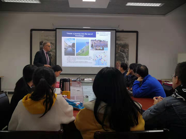 2019年11月2日上午,应北京理工大学材料学院北京市纤维素及其衍生材料工程技术研究中心邀请,意大利Trieste大学Maurizio Fermeglia教授访问材料学院,做了题目为“Nano tools for macro problems: multiscale molecular modeling of nanostructured polymer systems”的学术报告。北京理工大学材料学院高分子系党支部书记李晓东老师、工程中心负责人邵自强老师、王文俊、王飞俊、王建全和陈攀等老师及研究生们参加了此次报告会。