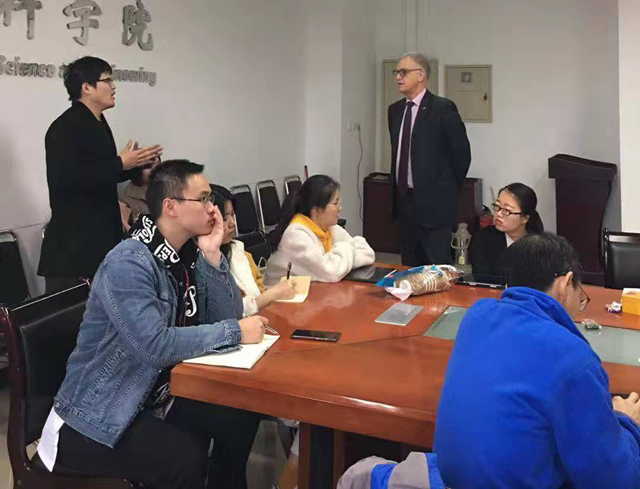 Maurizio Fermeglia教授致力于在诸多领域发展多尺度模拟方法,如材料科学、生命科学 、过程工程、纳米技术和医学等,同时致力于开发鉴定相平衡和应用热力学过程的实验方法。在接近两个小时的学术报告里,Fermeglia教授简要地介绍了纳米技术中理论模型和模拟的重要性和发展简史、分子模拟的先进性和纳米尺度下原创技术的趋同性,随后由浅入深地介绍了多尺度分子模拟的原理:即从原子到粗颗粒的简化处理和从粗颗粒到微米有限元分析的近似。最后重点介绍了自己研究组成果的三个独立工作:1)功能化纳米粒子的链长度和接枝密度对掺杂型聚合物材料性能的影响,2)纳米粒子分布对聚合物基体纳米结构化的影响,3)生物医用分子中的自组装现象;从而阐释了多尺度模拟的具体应用实例以及其相较于实验手段的先进性。报告结束后,学生和老师均和教授就学术和模拟的技术问题进行了深入的讨论,其中包括粗颗粒分子动力学模拟与耗散粒子动力学模拟的原理比较和应用范围等等。
