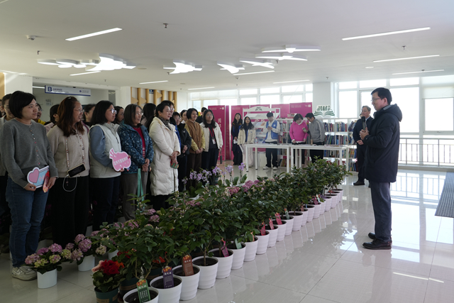 “智汇绿意,巧思生花”环节将活动推向高潮。现场陈列的绿植旁悬挂着趣味谜语,涵盖传统文化、生活常识、学科知识等内容。女教职工们凝神思索、相互探讨,猜中谜底者兴高采烈地领走心仪绿植,未猜中者继续挑战,现场气氛热烈融洽,将智慧比拼与绿色生活巧妙融合。