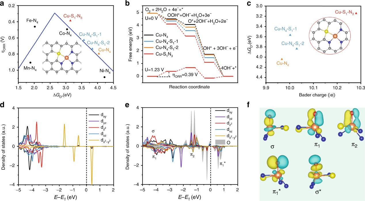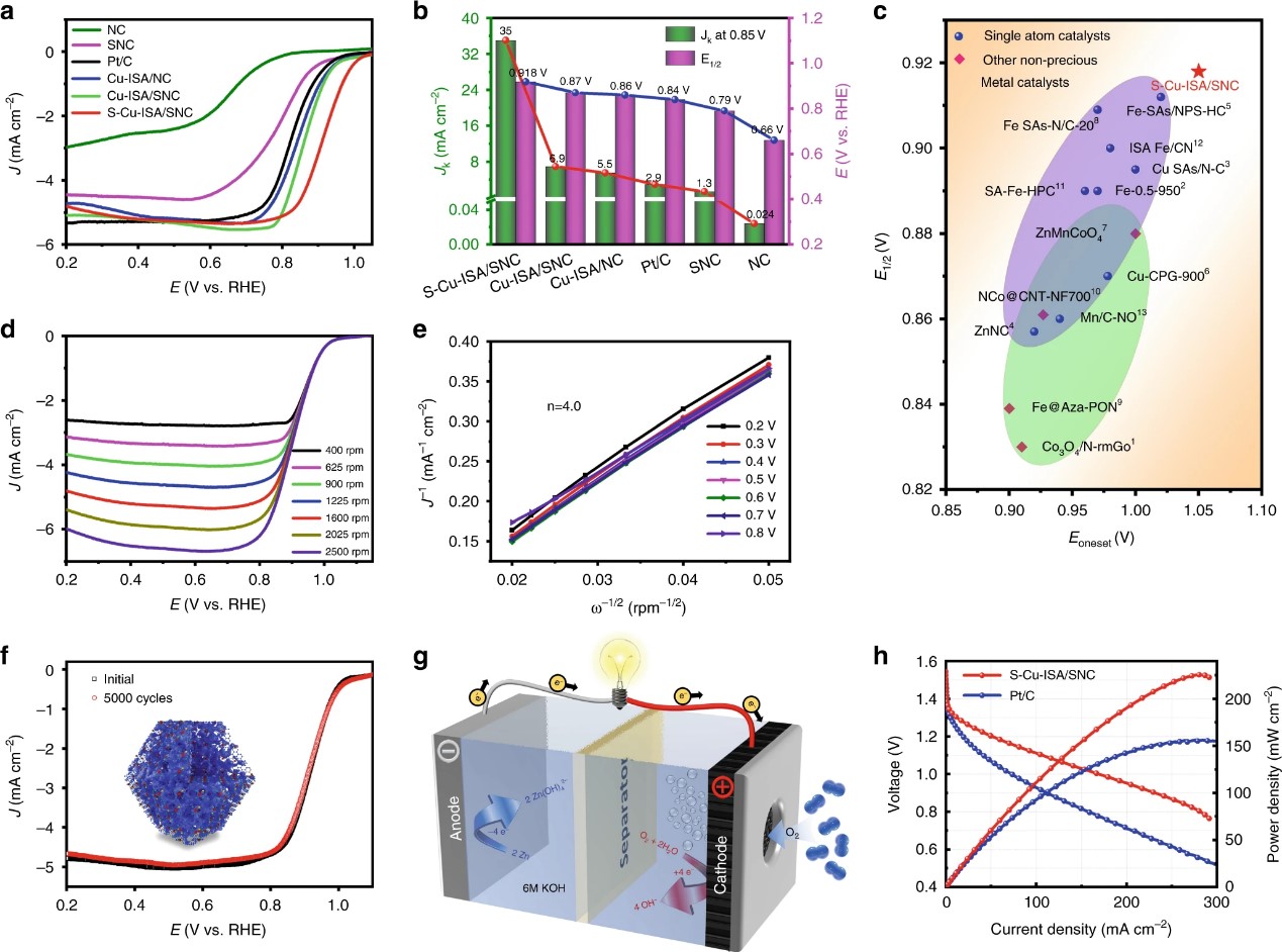 近日,北京理工大学张加涛教授与陈文星副研究员在催化剂的原子界面调控合成方面,与清华大学深圳研究生院的李佳教授以及清华大学李亚栋院士、王定胜副教授团队合作,合成了非对称配位的CuS1N3单位点催化剂,并实现了其在电催化氧还原(ORR)性能方面的突破性进展,相关成果以“Engineering unsymmetrically coordinated Cu-S1N3 single atom sites with enhanced oxygen reduction activity”为题,发表于顶级期刊《Nature Communications》(IF:13.811)(文章DOI: 10.1038/s41467-020-16848-8)。