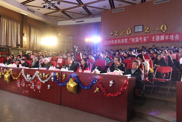 2020年1月2日18:30,北京理工大学材料学院2020年“材满今宵”主题新年晚会于在中关村校区七号楼报告厅隆重举行。北京理工大学原纪委书记张敬袖,材料学院党委书记张青山,副院长李树奎,副院长吴川,党委副书记、副院长刘艳,院长助理李晓东,院长助理程兴旺,院长助理李国平出席了本次晚会,与230余名师生欢聚一堂,共同庆祝新年的到来。