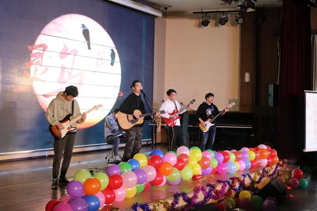 灵乌乐队首先带来了开场表演,一首《我还年轻》瞬间点燃了全场的气氛,随后他们又带来了原创歌曲《苦昼短》,深深地抓住了观众们的心。主持人介绍了到场的各位领导来宾,在大家热情的欢呼声中,晚会正式开场。