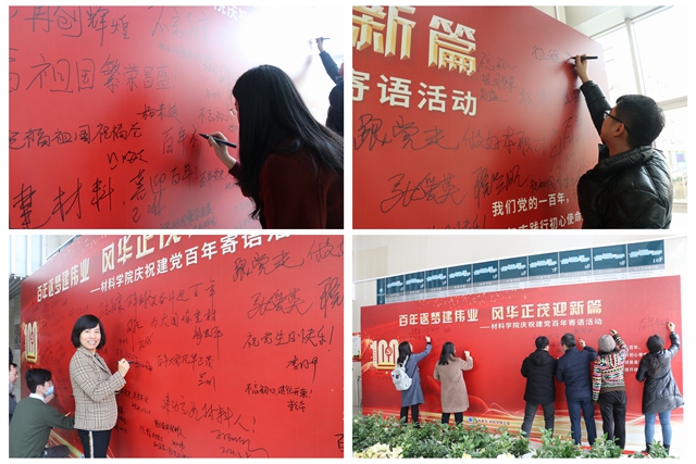学院教职工热情高涨,积极参与,在活动展板前写下寄语,表达对建党百年、对国家繁荣昌盛、对学校学院发展的真切祝福。大家用真心、真情、真意,讴歌中国共产党领导下祖国取得的辉煌成就,抒发对祖国母亲的款款深情及对祖国美好未来的希冀。