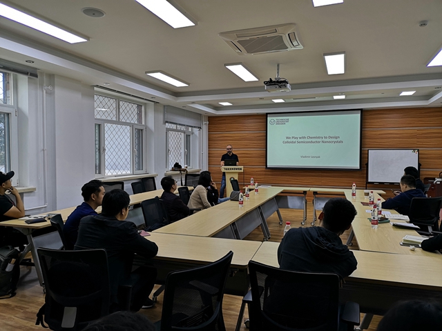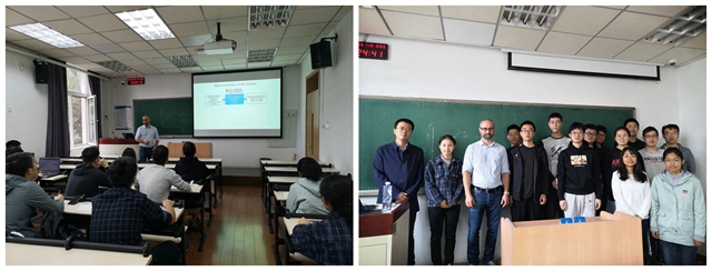 为了推进材化系研究生、本科生的全英文教学,在来访期间,Vladimir Lesnyak教授根据学生的知识背景,结合自身教学、科研经历,为材化系的本科生在10月11号上了一堂全英文课程。Lesnyak教授通过图片、视频等方式教学,为同学们展示了量子点在现代生活中的广泛应用和科技前沿,在场师生收获颇丰。课后,Lesnyak教授耐心回答了同学们的问题,进一步与师生进行了学术交流,并鼓励他们积极申请国际交流。