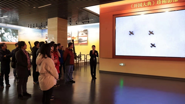 参观中我们有幸观看了《开国大典》珍稀影像,是目前公开的关于开国大典的时间最长、内容最完整的视频,真实还原了这一伟大的历史时刻,让我们再一次见证了这一伟大的历史时刻。70年过去了,今日中国早已今非昔比,无论是从经济、科技、军事、体育等一系列彰显国家实力强大的领域上已领先于世界。当年被称之为“东亚病夫”的中国人从70年前站起来的那一刻起就宣告了中国从此将进入巨龙腾飞的时代。时至今日,再让我们回顾当年的那一段阅兵风采,仍不觉让人血脉膨胀,荡气回肠。