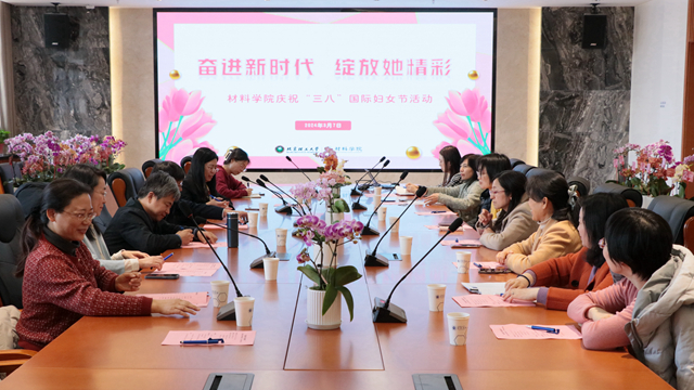 春意融融,花香四溢。在第114个“三八”国际劳动妇女节来临之际,北京理工大学材料学院工会在5号教学楼501会议室举办“奋进新时代 绽放她精彩”庆祝活动。学院女教师欢聚一堂,共庆节日。材料学院院长陈鹏万、党委书记程兴旺出席活动。活动由材料学院副院长、工会主席刘艳主持。 座谈会上,来自系部党支部书记、领军和青年人才、专职实验、管理服务等不同岗位的12位教师代表,结合自身的成长经历和奋斗历程,...