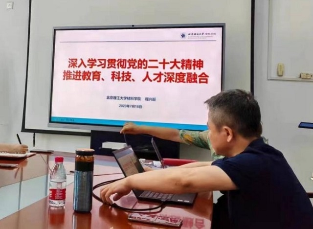 为全面学习贯彻党的二十大精神,推动学习贯彻习近平新时代中国特色社会主义思想主题教育走深走实,2023年7月18日上午,材料学院党委书记程兴旺同志为金属与无机非金属支部的党员教师讲授题为《党的二十大报告和教育科技人才》专题党课,北理工材料学院金属与无机非金属系全体党员教师参加学习。 程兴旺同志重点围绕党的全面领导、中国式现代化、新部署新要求、新时代十年伟大变革、四大里程碑、中心任务、两个确...