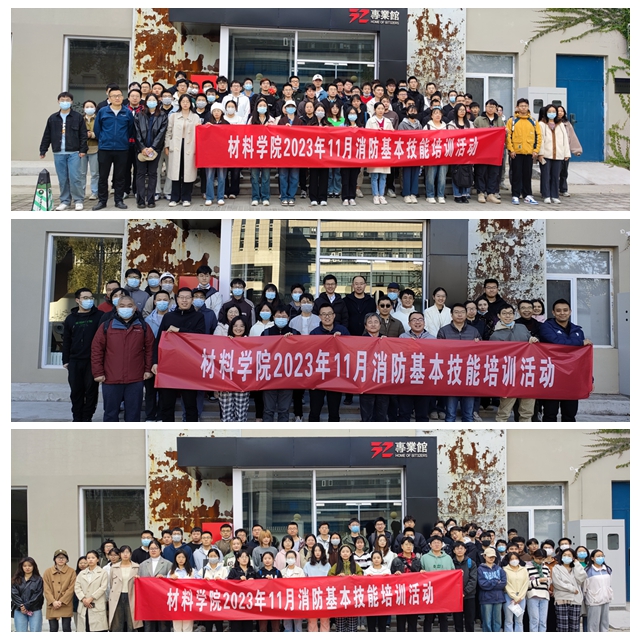 2023年11月9日是第32个全国消防日。材料学院和学校保卫部联合举办以“预防为主,生命至上” 为主题的“消防宣传月”专项活动,普及消防安全知识,提升师生消防应急处置能力,实现灭火器实操演练100%全员覆盖,营造了生命至上、全民消防的浓厚安全文化氛围。 11月4日和11月9日分六批次组织了消防基本技能培训活动,每个批次包含知识科普和实操演练两个环节,培训对象主要为2020级本科生、2023级...