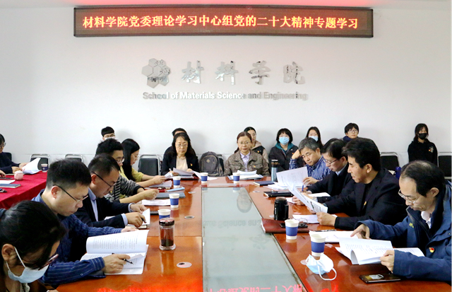 10月25日下午,材料学院召开党委理论学习中心组(扩大)会议,围绕学习宣传贯彻党的二十大精神开展专题学习。学院党委理论学习中心组固定成员、师生支部书记、部分党员师生代表参加学习。学院党委书记金海波主持会议。 金海波首先传达了党的二十大精神,围绕“三个务必、三件大事、五个重大原则、中国式现代化、 五个‘必由之路’”等关键词对党的二十大报告进行了解读,并结合学院工作作了发言。他表示,作为党创办的...